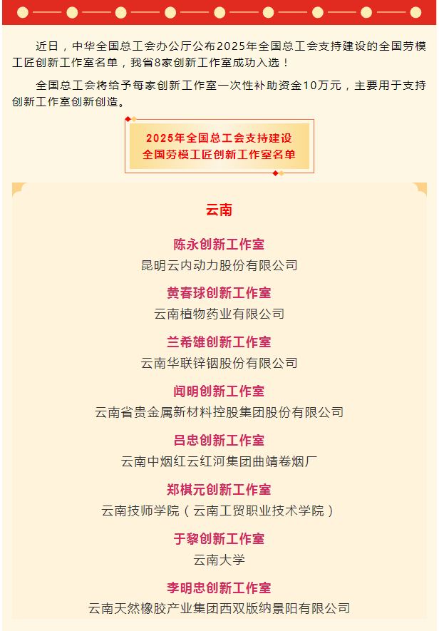 蘭希雄創(chuàng)新工作室入選2025年全國(guó)總工會(huì)支持建設(shè)的全國(guó)勞模工匠創(chuàng)新工作室名單
